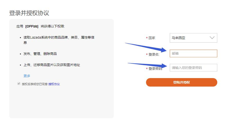 (4)点击获取授权 Code 按钮跳转到 Lazada 授权页面