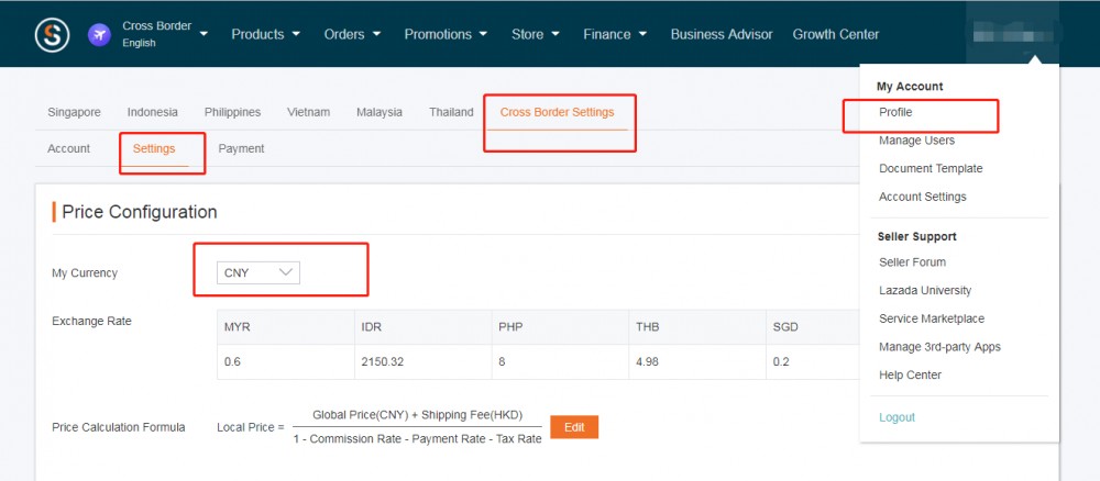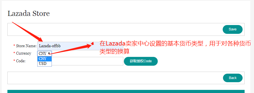 (3)填写店铺名称,名称最好以 Lazada 开头,便于区分不同平台的店铺,货币类型是自己LAZADA店铺设置的,设置的什么类型就选择什么类型。
